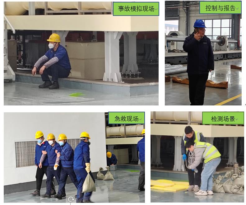特種缸車間作為本次事故模擬地點、公司根據(jù)應急救援和措施展開系列現(xiàn)場搶險與報告、及時聯(lián)系高新區(qū)事故接警、做好企業(yè)警戒及響應和搶險行動、配合消防組織和檢測機構展開事故處置,并完成應急和善后行動。